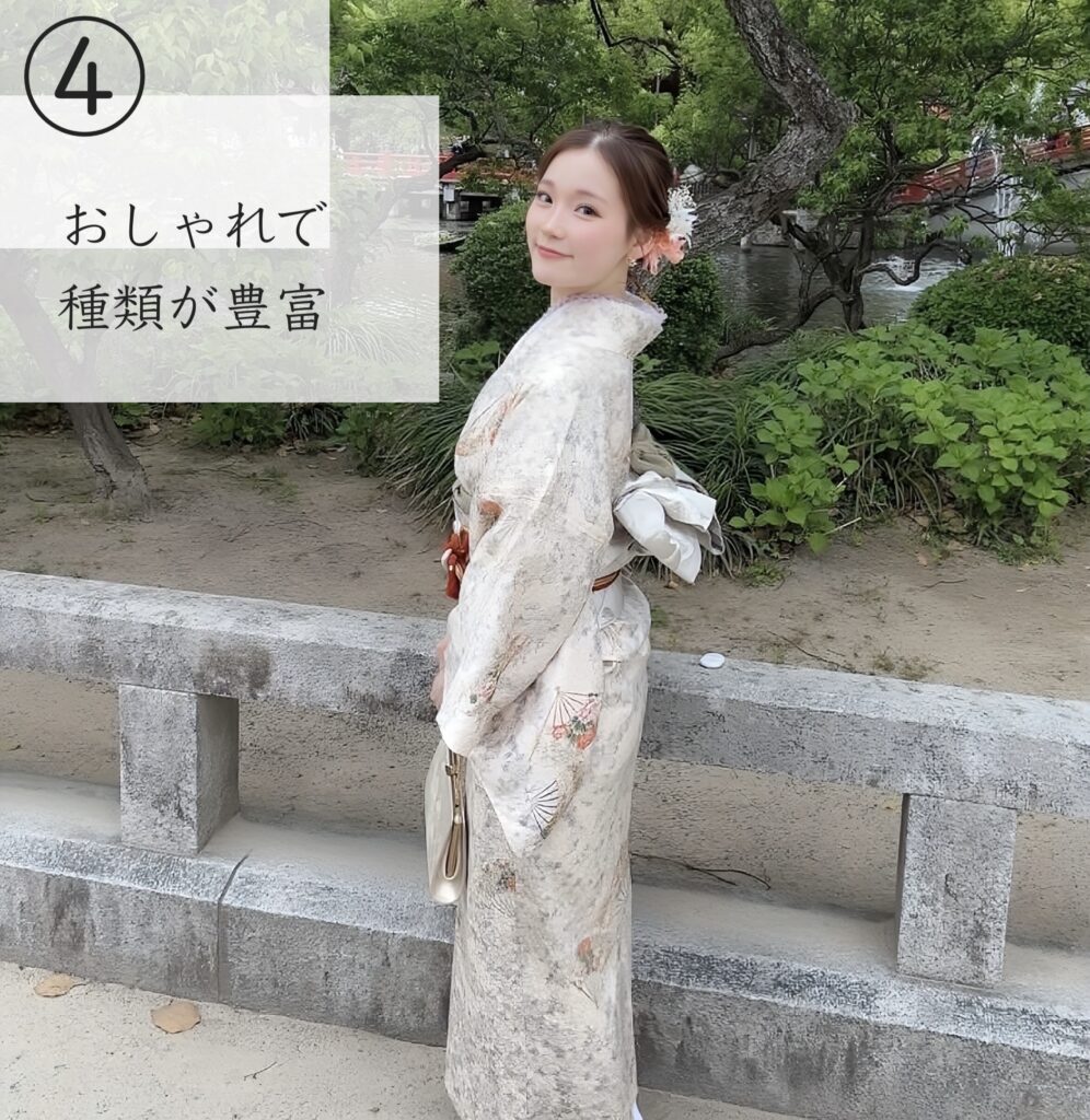 着物の種類が豊富で特にアンテイ-ク物が多くおしゃれでかわいい。お宮参りから七五三、成人式や婚礼まで対応しています。