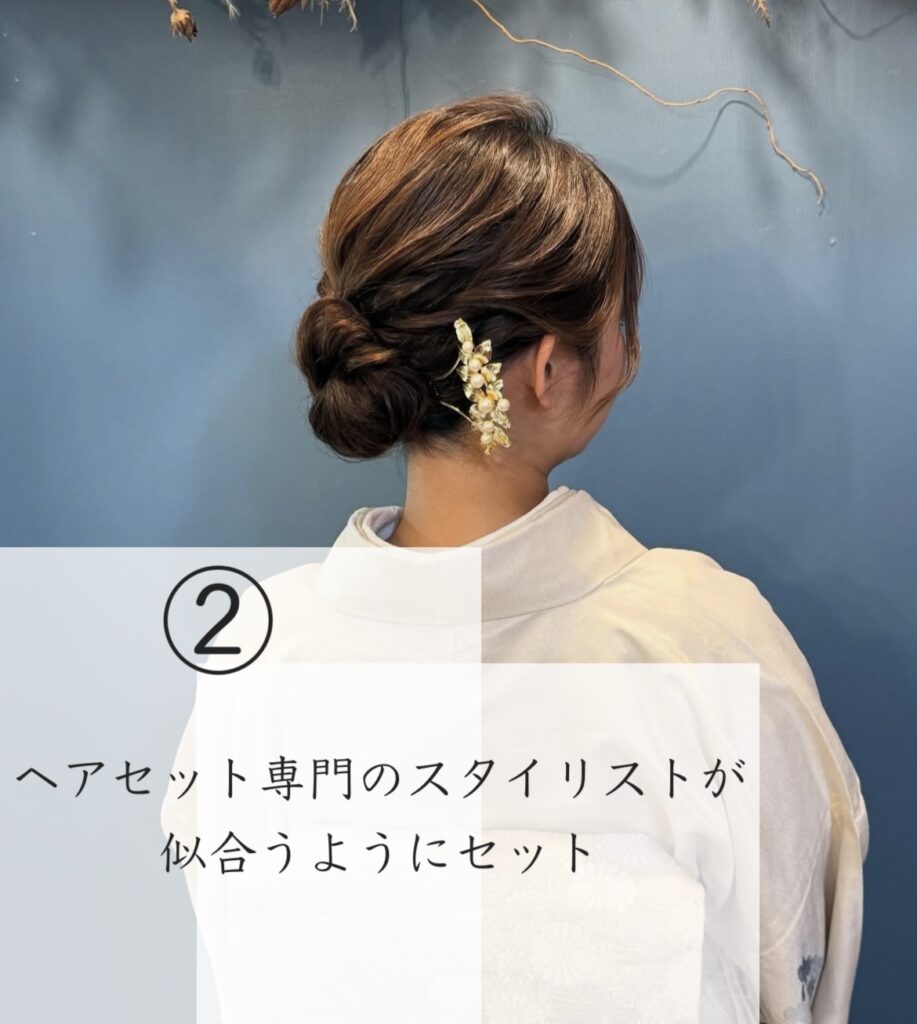 「花水木」のヘアスタイリストはヘアセット専門でヘアアレンジから日本髪まで幅広い技術で一人ひとりに似合うようにセットします。