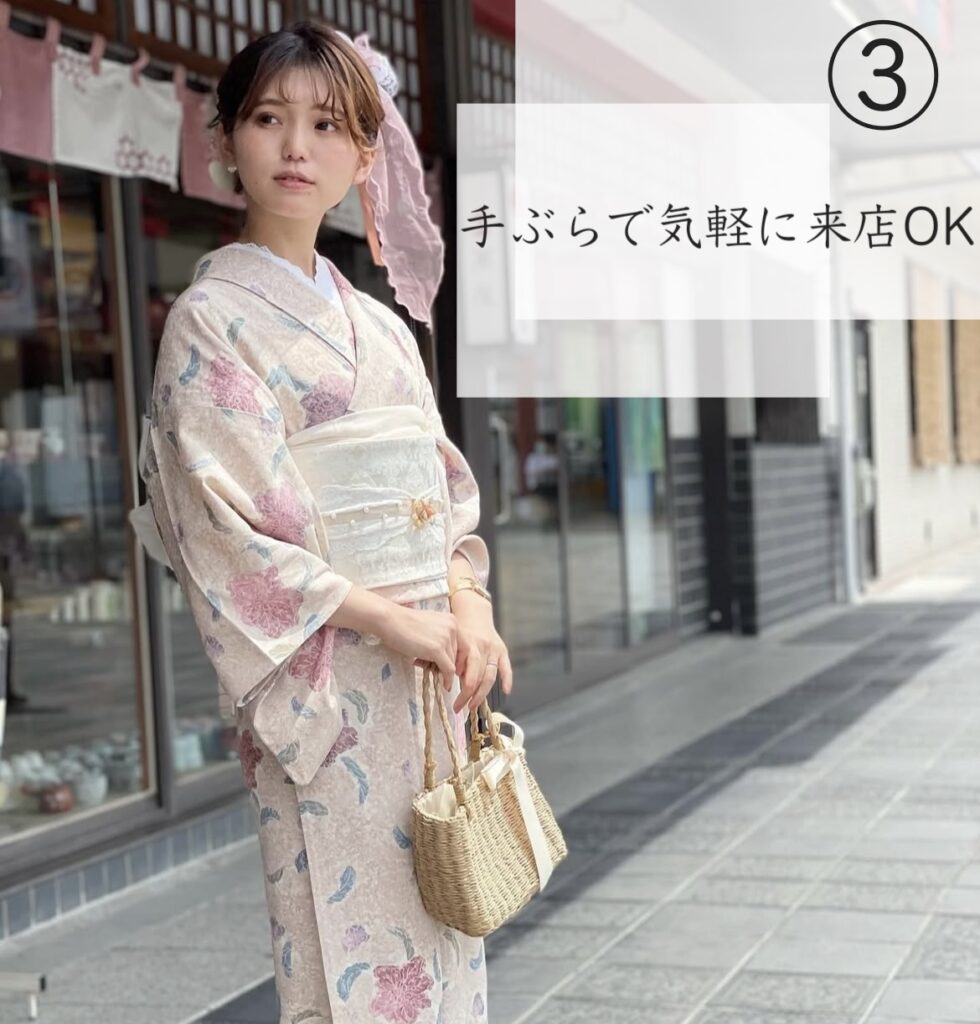手ぶらで気軽に来店していただけます。着付けに必要な物は全て含まれています。