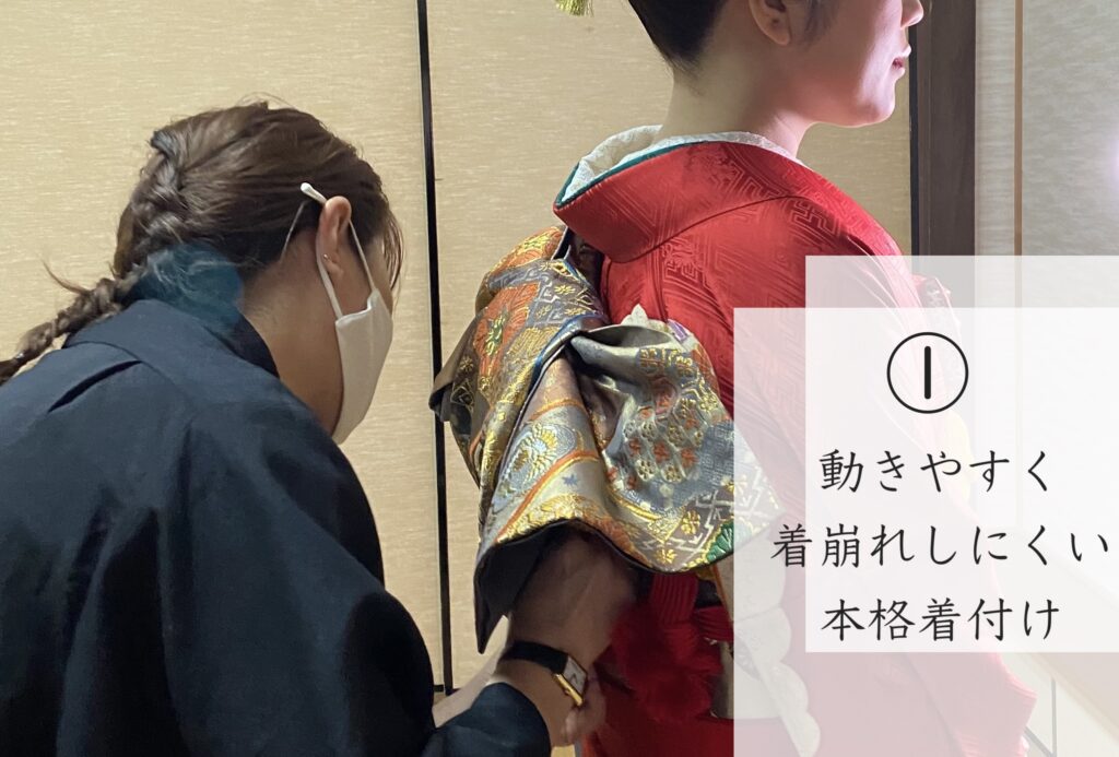 「花水木」の着付けは、本格的で早くて楽で動きやすく着崩れしない。どこから見ても美しい着物姿です。