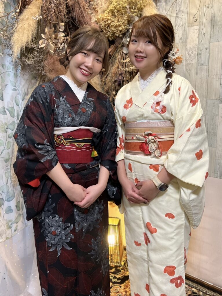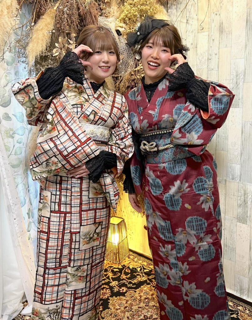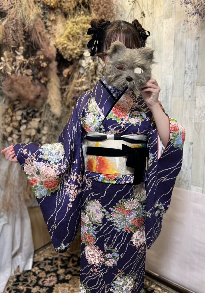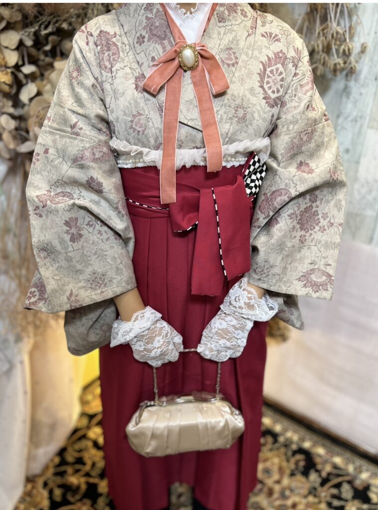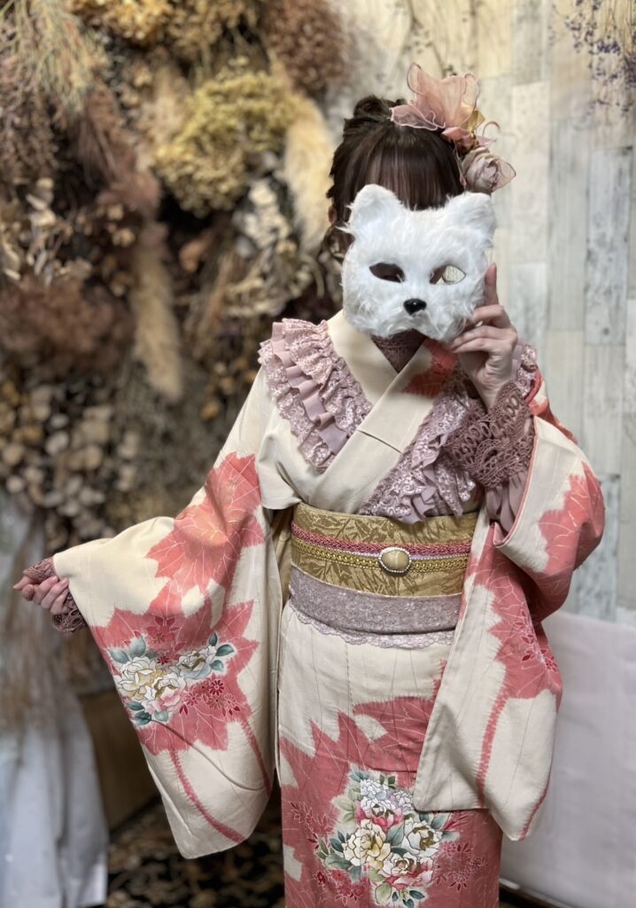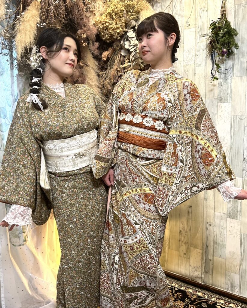 - アンティーク着物を中心に可愛いさとトレンドを取り入れたコーディネートを楽しめます。