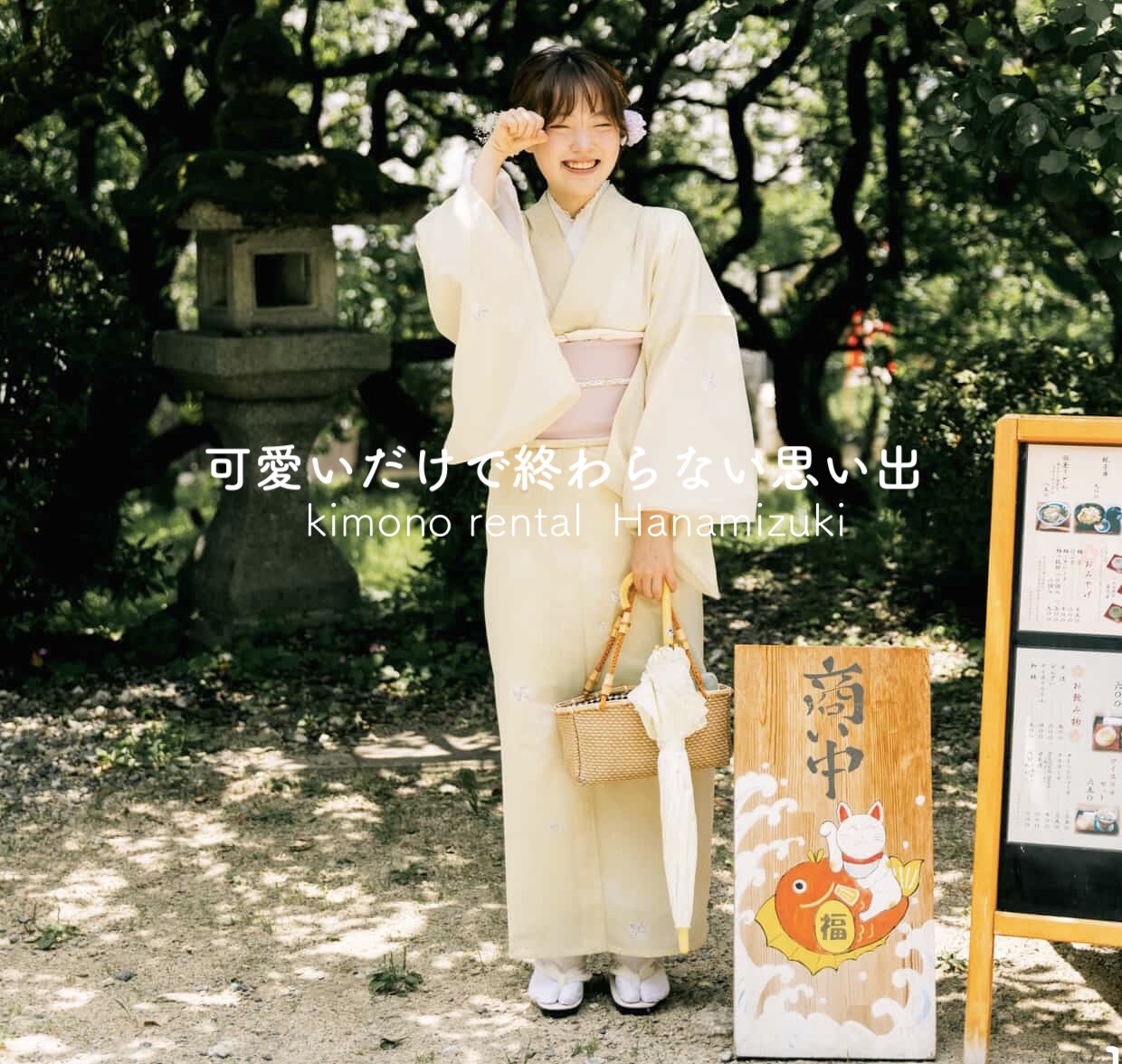 For sightseeing and strolling kimono rental, please come to our shop on the 2nd floor, “Osanpo Kimono.”