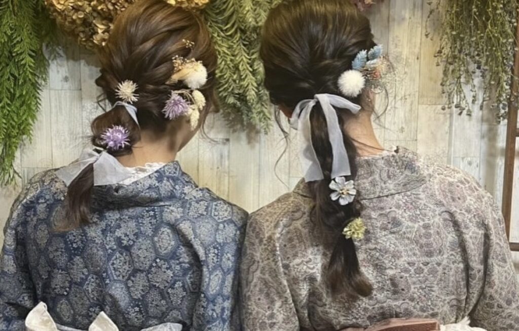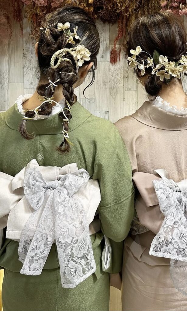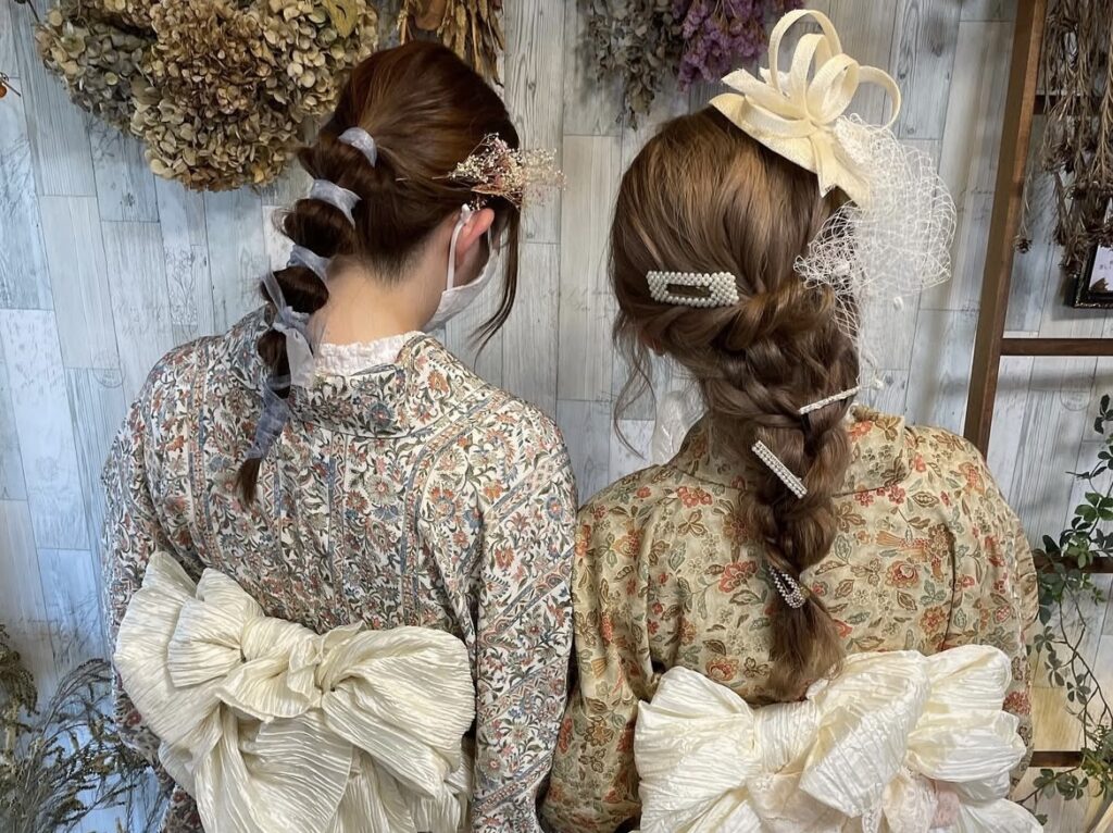 レース着物に小物つけ放題とヘアセットをプラスした欲張りプラン。