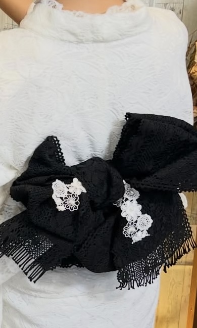 ”帯周りはレースやパールでのスタイリングにまります”