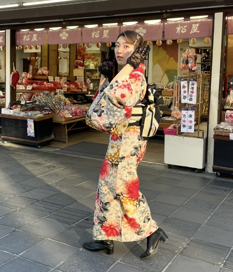 - アンティーク着物を中心に可愛いさとトレンドを取り入れたコーディネートを楽しめます。