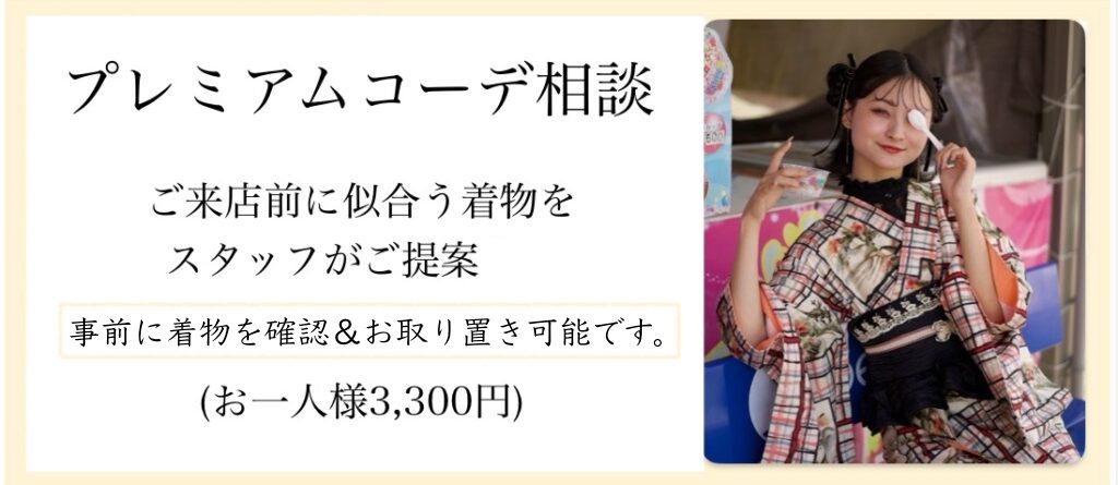 - アンティーク着物を中心に可愛いさとトレンドを取り入れたコーディネートを楽しめます。